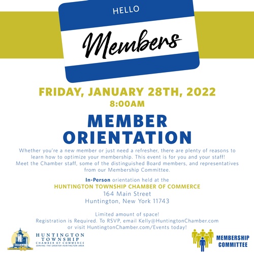 Whether you're a new member or just need a refresher, there are plenty of reasons to learn how to optimize your membership. This event is for you and your staff! Meet the chamber staff, some of our distinguished board members, and representatives from our membership committee. Email Kelly@HuntingtonChamber.com for more details!